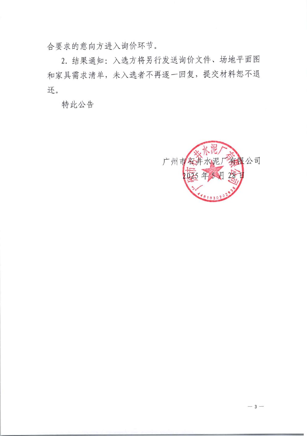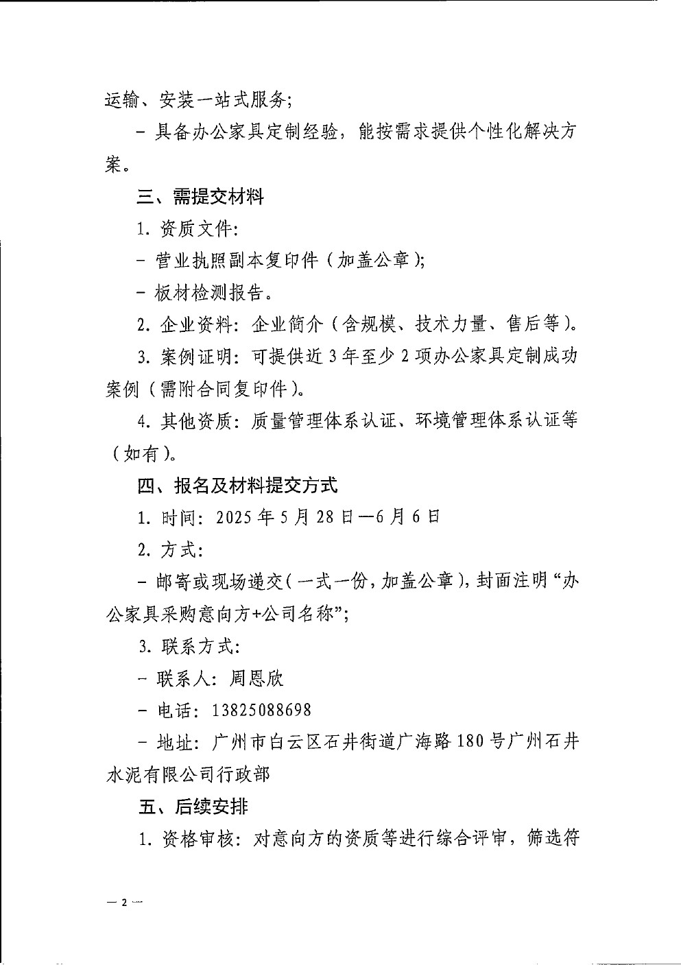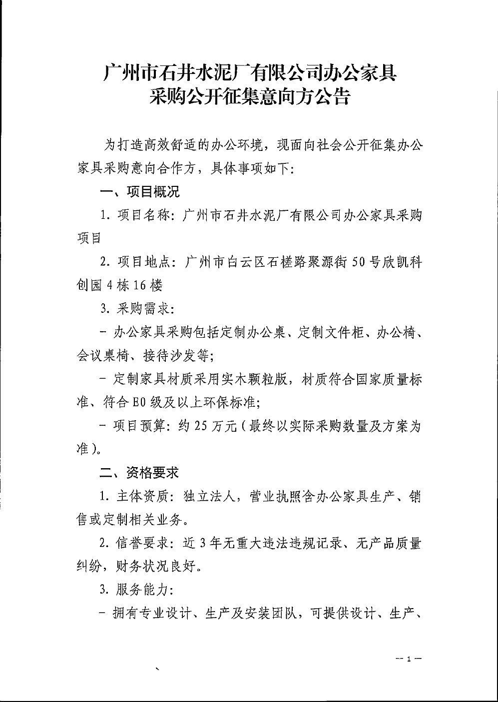 广州市石井水泥厂有限公司办公家具采购公开征集意向方公告
